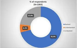 The remaining 23% are unbanked, meaning they do not use the services of any banking institution.